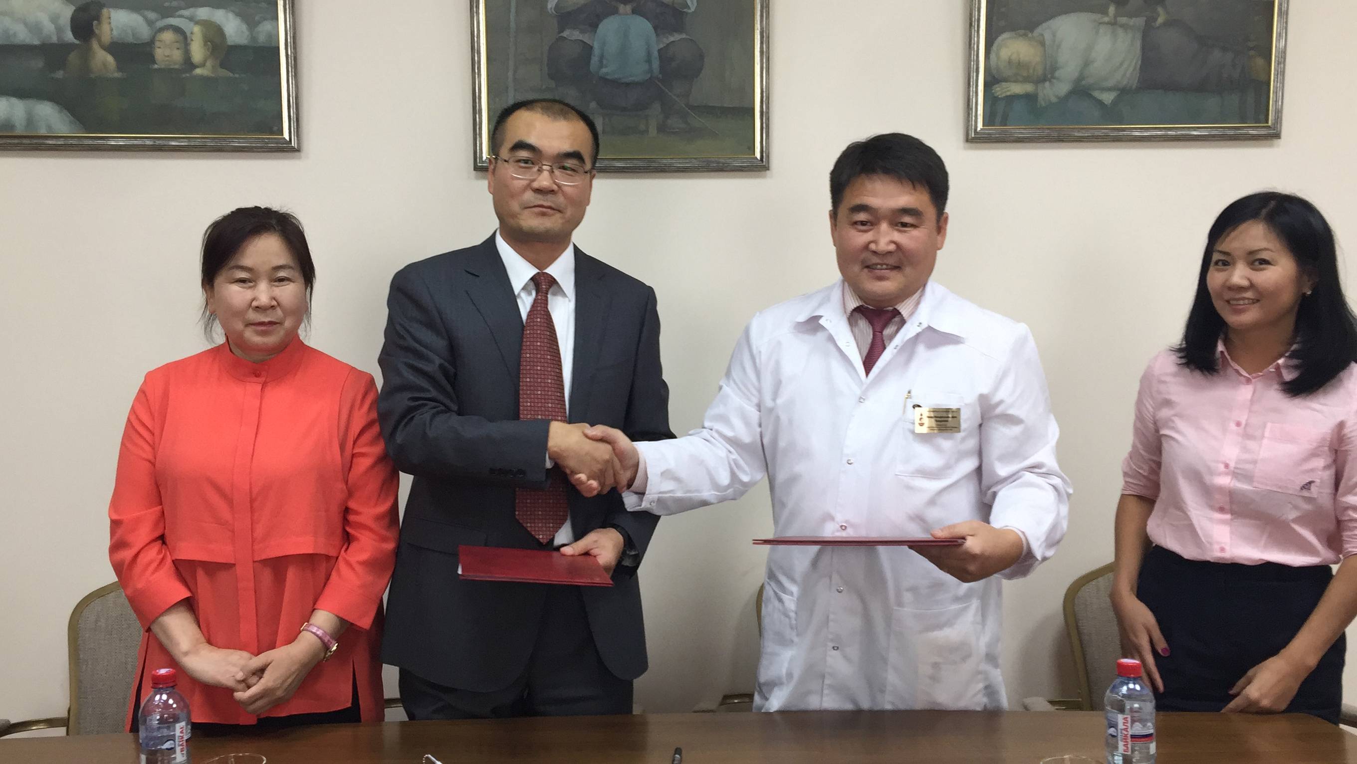 本次出访中副院长赵红兵代表天美传媒 与东方医学中心巴雅尔院长签署了医疗合作意向书。并在东方医学中心总部和 贝加尔湖医疗康复养护中心进行了三天的义诊、讲座和技能展示活动。