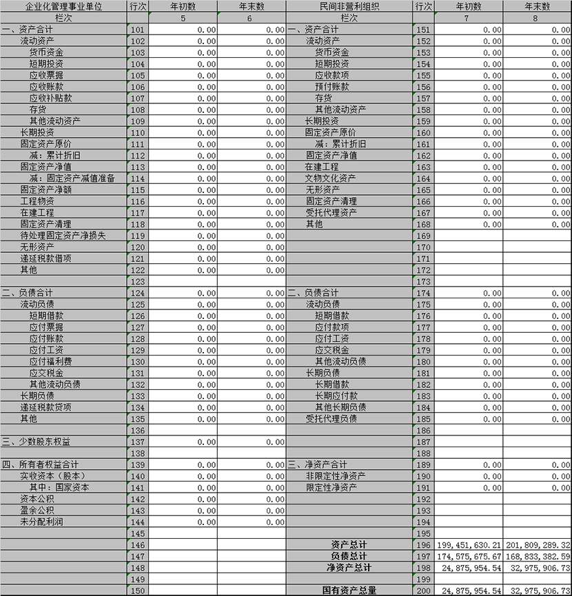 5.结转和结余包括单位财政拨款结转和结余及其他资金结转和结余;非流动资产基金包括执行《行政单位会计制度》的单位资产基金和执行《事业单位会计制度》及行业事业单位会计制度的单位非流动资产基金。