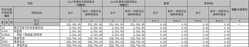 注:1. 本表反映部门和单位年初结转和结余调整情况,由年初结转和结余发生变动的部门和单位填报。