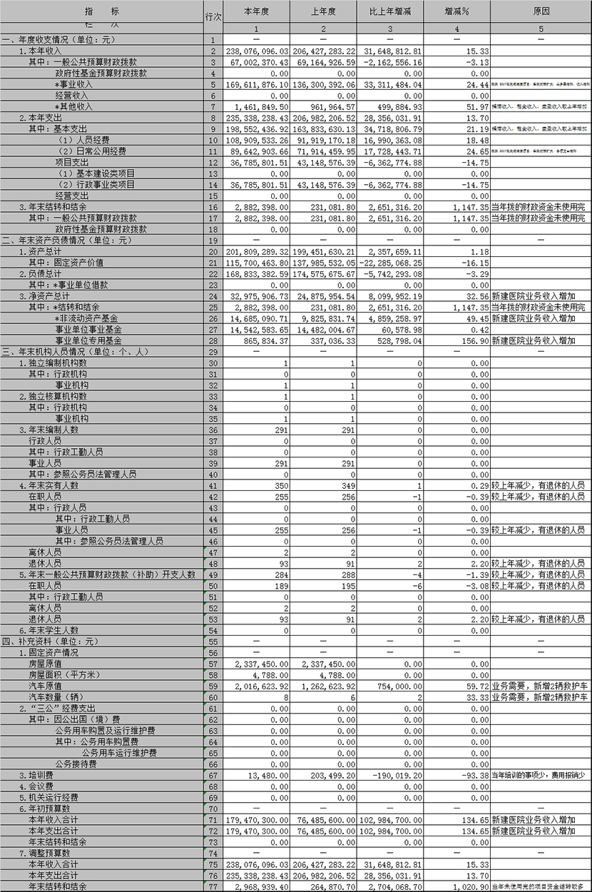 注:1.本表反映部门和单位本年收支余、资产负债、机构人员等主要指标与上年数对比变动情况及变动原因,各部门和单位均需填报本表。