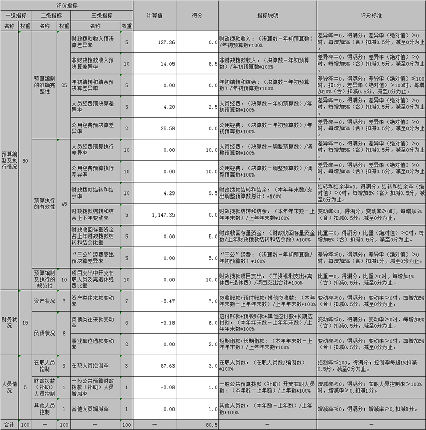 3.各项评分标准中,对于分子不为0且分母为0的情况,按0分计算;分子、分母同为0的情况,按满分计算。