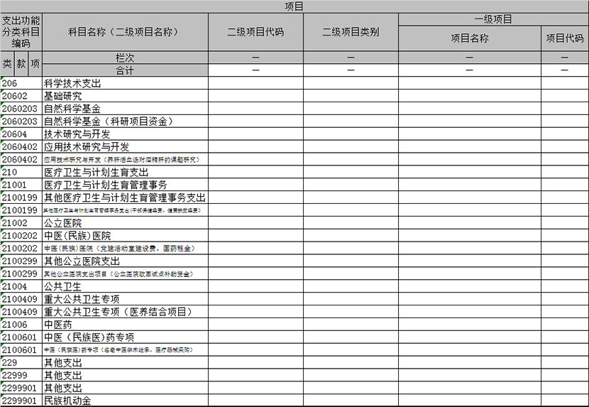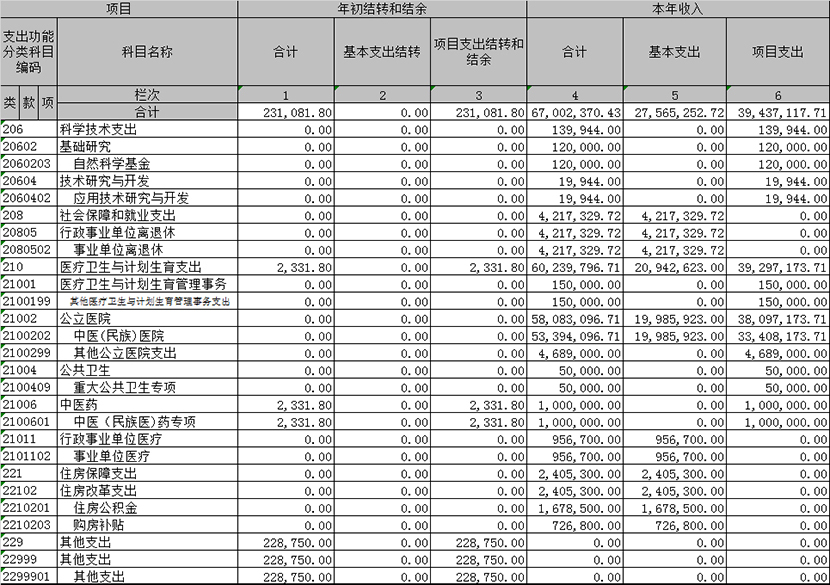 Z06 项目收入支出决算表(财决06表)
