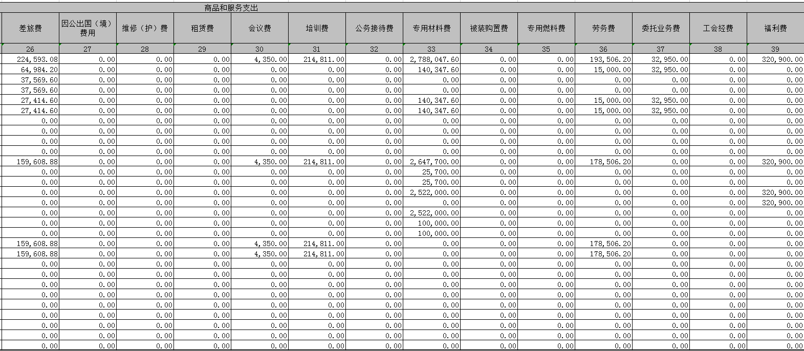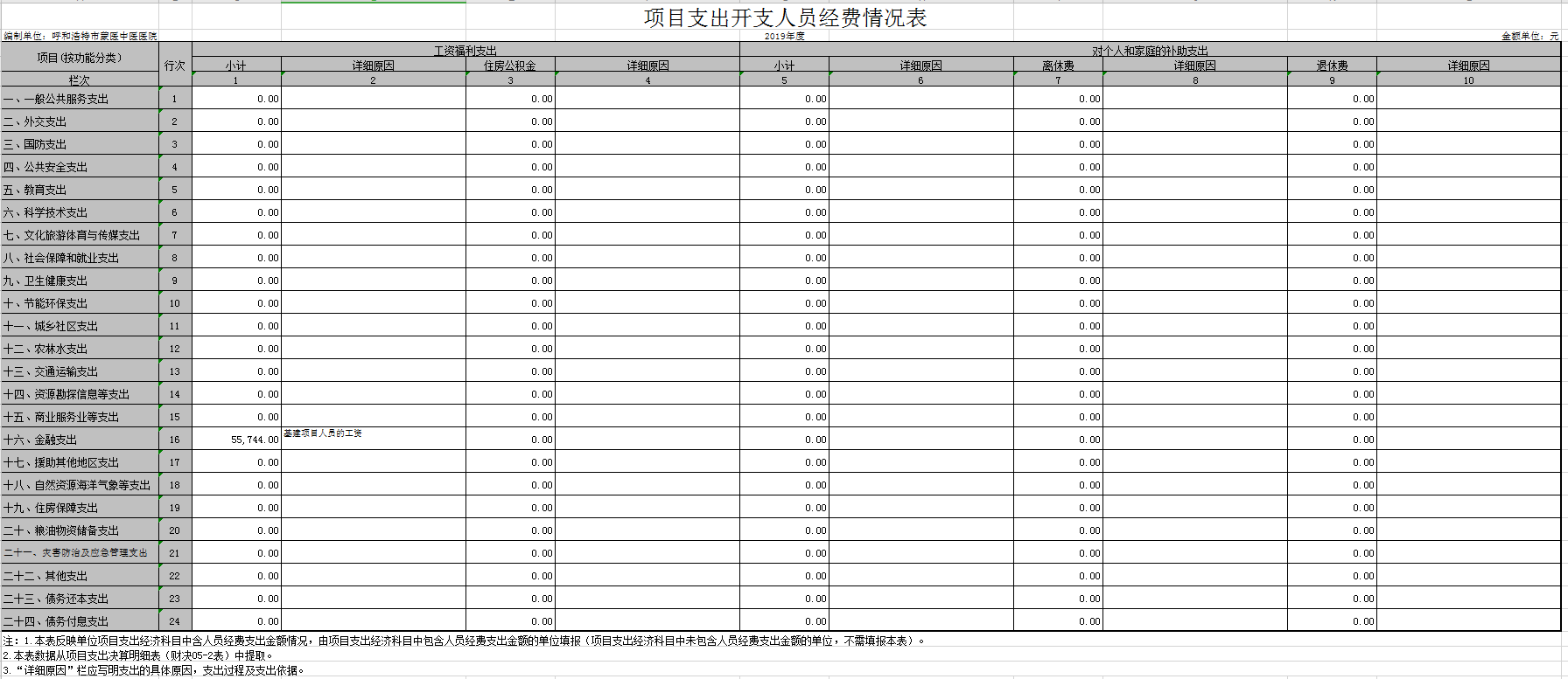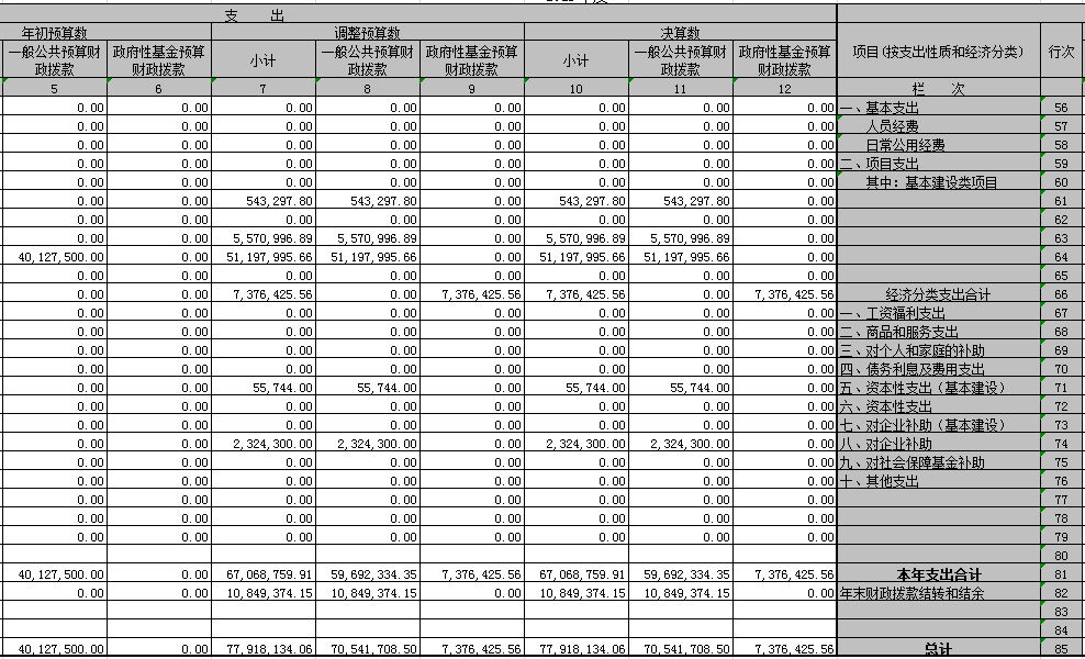 项目支出预算明细表