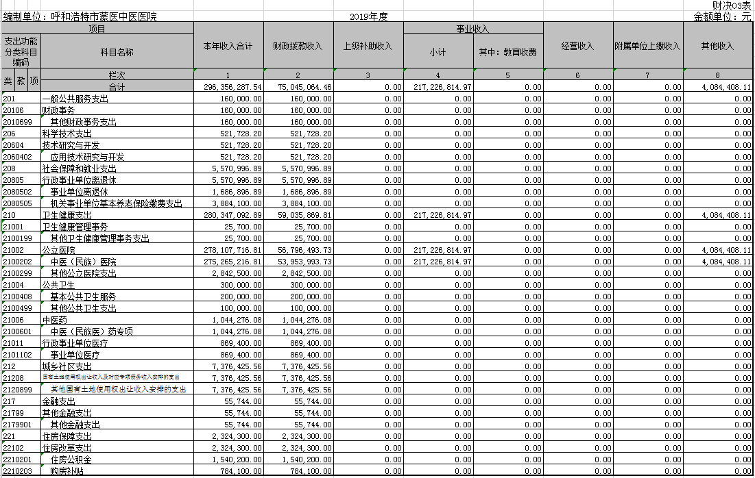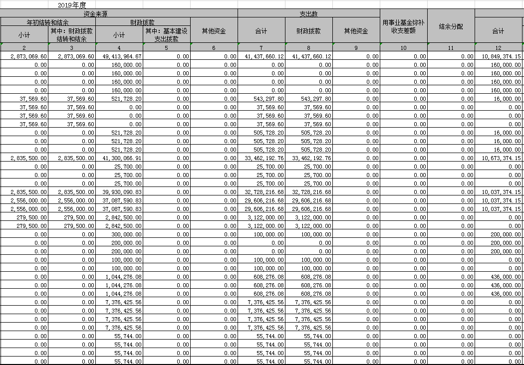 2019年度收入支出决算总表