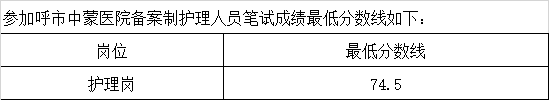 参加呼市中蒙医院备案制护理人员护理岗笔试成绩在74.5分(含74.5分)及以上的考生参加资格复审。
